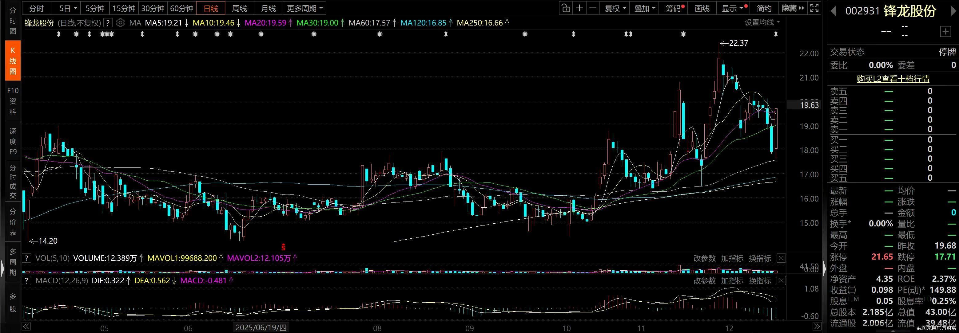 值得一提的是,锋龙股份停牌前,公司股价出现提前涨停,12月17日收于涨停价19.68元/股。