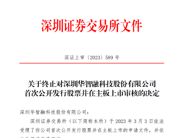 2023年7月19日,华智融向深交所提交了《发行人关于撤回深圳华智融科技股份有限公司首次公开发行股票并在主板上市申请文件的申请》,上市保荐人也同步提交了《民生证券关于撤回深圳华智融科技股份有限公司首次公开发行股票并在主板上市申请文件的申请》。7月26日,深交所正式公布终止华智融上市的决定,至此,华智融再次未能上市成功。
