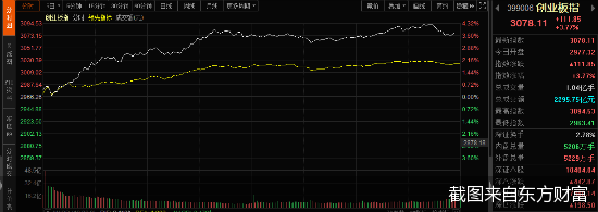 从1月4日盘面表现看,创业板指走势最强劲。高开之后,创业板指全天保持单边上扬态势。当日下午2点30分左右,创业板指涨幅一度涨超4%,但临近尾盘有所回落。截至1月4日收盘,创业板指收涨3.77%,报3078.11点。当日盘中,创业板指一度突破2015年7月以来的阶段性高点,盘中最高点达3094.53点。