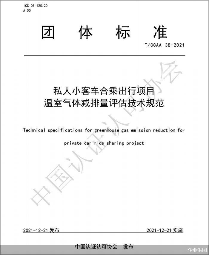 《规范》由中国船级社质量认证公司、北京畅行信息技术有限公司(嘀嗒出行)、上海宝碳新能源环保科技有限公司联合编制,并由中国认证认可协会于2021年12月21日发布。