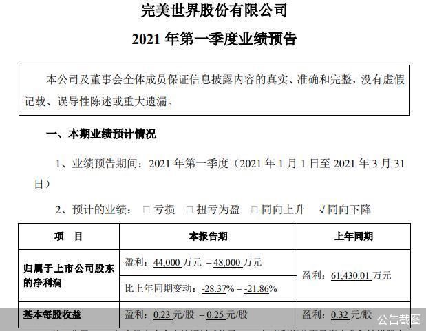 接连不断的新动作,让完美世界在外界眼中频频“刷脸”,而4月14日晚间同步公布的2020年度业绩快报和2021年第一季度业绩预告,更是受到各方的关注。然而,这两份公告却呈现出不一样的增减数字。