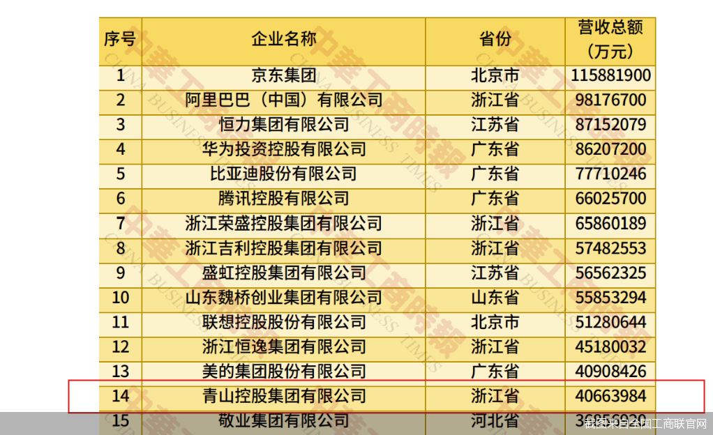 8月28日,全国工商联发布了2025中国民营企业500强榜单,之后青山控股官网也贴出了“喜报”,集团位列中国民营企业500强第14位,中国制造业民营企业500强第11位。青山控股在浙江温州颇为知名,但集团及其创始人项光达却颇为低调。不过,超4000亿元的营收规模让青山控股“被迫”高调,频频出现在各大排名榜单中。
