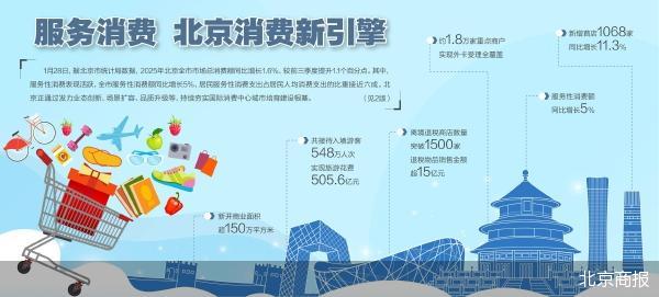 1月28日,北京市统计局发布数据,2025年北京市市场总消费额同比增长1.6%,较前三季度提升1.1个百分点。其中,服务性消费表现活跃,全市服务性消费额同比增长5%,居民服务性消费支出占居民人均消费支出的比重接近六成。北京正通过发力业态创新、场景扩容、品质升级等,持续夯实国际消费中心城市培育建设根基。