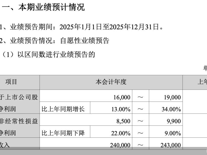 业绩预告显示,在出口疫苗产品收入同比增长叠加降本增效等管控措施下,沃森生物预计2025年归属于上市公司股东的净利润为1.6亿—1.9亿元,实现了同比13%—34%的增长;而扣除非经常性损益后,净利润为8500万—9900万元,同比下降9%—22%。