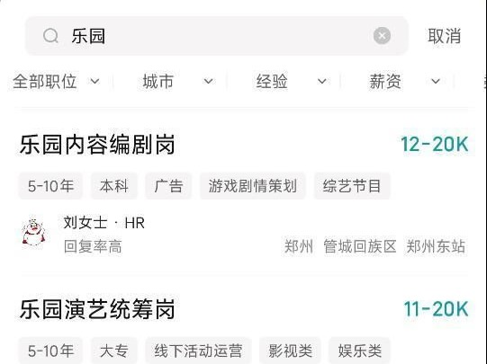 BOSS直聘显示,蜜雪冰城发布了乐园内容编剧岗、演艺统筹岗、工程管理岗以及周边产品统筹岗等岗位招聘信息,月薪1.1万元起,最高2.4万元。