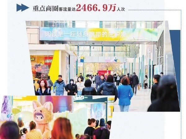 假期中,特色市集IP出圈,商圈场景多元焕新。北京商报记者获悉,东城区隆福寺“隆福潮集”汇聚老字号与非遗品牌,打造特色市集IP,假期前两日客流量达13.9万人次。海淀区五棵松华熙·LIVE以春日市集为核心,文创手作、花艺潮玩等主题活动人气爆棚,带动五棵松商圈消费额同比增长27.5%。湾里·王府井WellTown联动环球影城IP,叠加零售与餐饮促销,商圈客流量同比增长1.2倍。