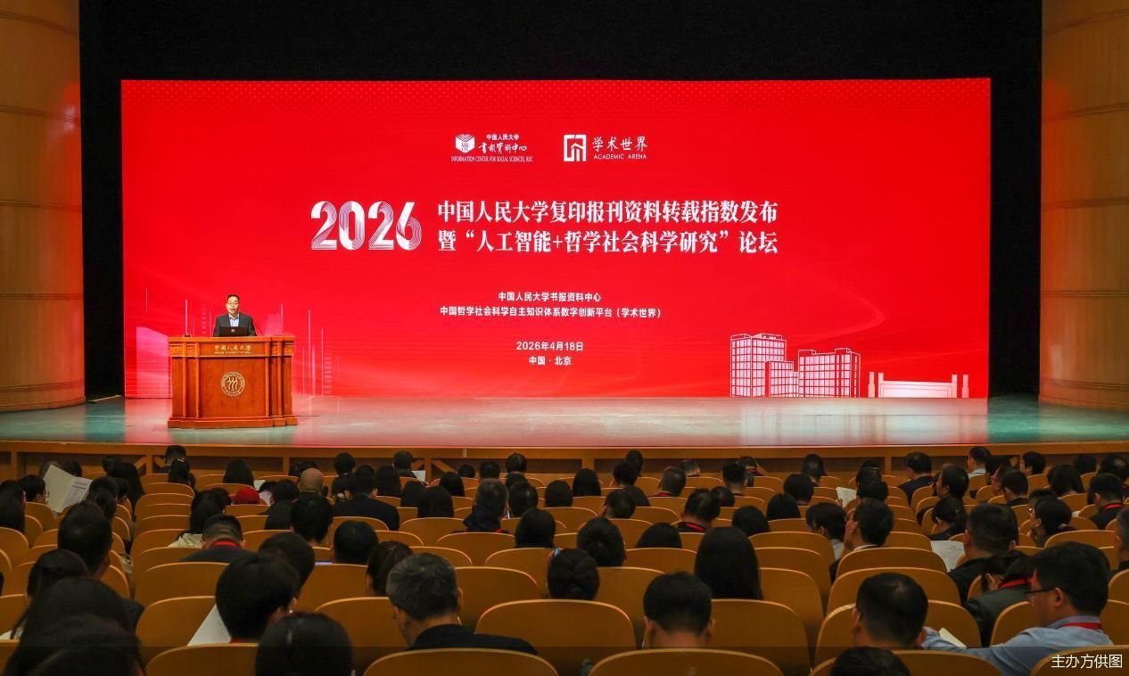北京商报讯(记者 张绪旺)4月21日,北京商报记者获悉,由中国人民大学书报资料中心、中国哲学社会科学自主知识体系数字创新平台(学术世界)主办的“2026年中国人民大学复印报刊资料转载指数发布暨‘人工智能+哲学社会科学研究’论坛”近日举办。