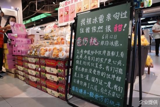 “盒马对于雹伤桃的货架期只有1天,且均在线下销售,不做线上订单,为的是尽量减少对雹伤桃的运输次数。”上述负责人表示。