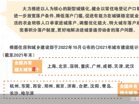 一方面,《方案》在提到“推动户籍准入年限同城化累计互认”时,也提到了两个表述:一个是除超大、特大城市外,一个是具备条件的都市圈或城市群。即:除超大、特大城市外,在具备条件的都市圈或城市群探索实行户籍准入年限同城化累计互认,试行以经常居住地登记户口制度,有序引导人口落户。