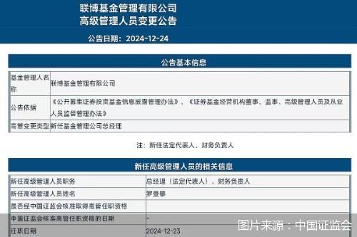 北京商报讯(记者 郝彦)12月24日,联博基金发布公告表示,自12月23日起,新任罗登攀为公司总经理(法定代表人)、财务负责人。