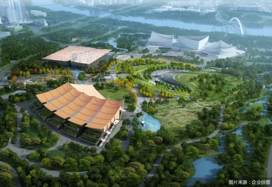 作为副中心绿化布局“两带、一环、一心”中的“一心”,城市绿心森林公园的面积达11.2平方公里,D.P.ONE源·心项目就坐落在公园内部,通过线上、线下及水路串联三大文化建筑群、大运河景区以及环球影城度假区,形成文商旅一体化新商圈。