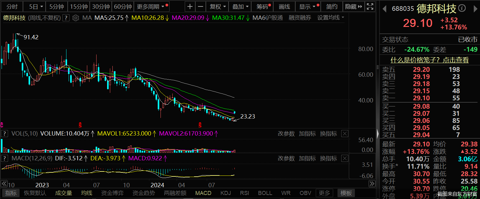 9月23日,德邦科技股价大幅收涨13.76%,报29.1元/股。
