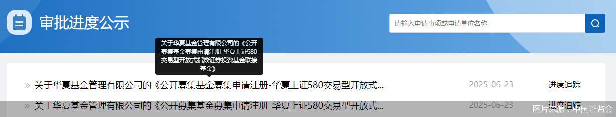 北京商报讯(记者 李海媛)6月23日,中国证监会官网显示,华夏基金上报了上证580ETF及其联接基金并获中国证监会接收材料,为业内首只。