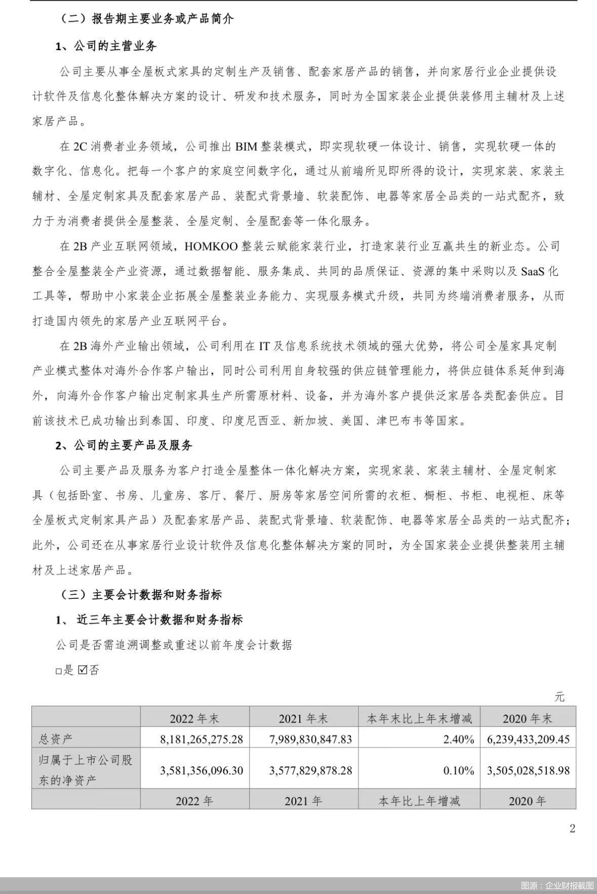 北京商报讯(记者 孔文燮 刘小云)4月27日晚间,广州尚品宅配家居股份有限公司(以下简称“尚品宅配”)发布2022年年度报告及2023年一季度报告显示,2022年尚品宅配实现营业收入约为53.14亿元,净利润约为4630万;2023年一季度营业收入约为8.09亿元。值得注意的是,2022年尚品宅配通过建设数字化设计工厂平台,全面打造“随心选”全屋定制新模式。