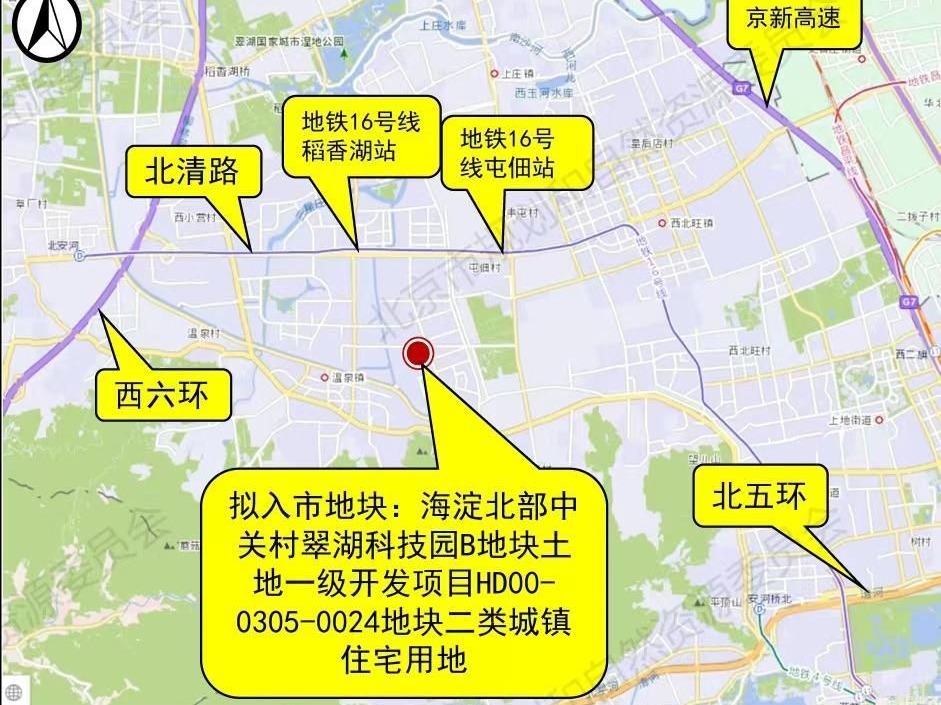 北京链家研究院分析师岳微指出,海淀北部中关村翠湖科技园HD00-0305-0024地块,位于西北五至六环,属海淀区温泉板块,产业配套及规划预期明确。该地块南侧是中关村温泉科技园,西侧是华为北研所,聚集算力、芯片、电子信息等创新产业,地块所在的海淀区中关村科学城北区 HD00-0115 街区,更是定位国际领先的科创中心核心区、开放活力的产城融合示范区和蓝绿交织的创新风貌典范区,随着中关村科技中心沿北清路北移规划思路的提出,翠湖板块将协同永丰板块成为海淀发展的重要区域。